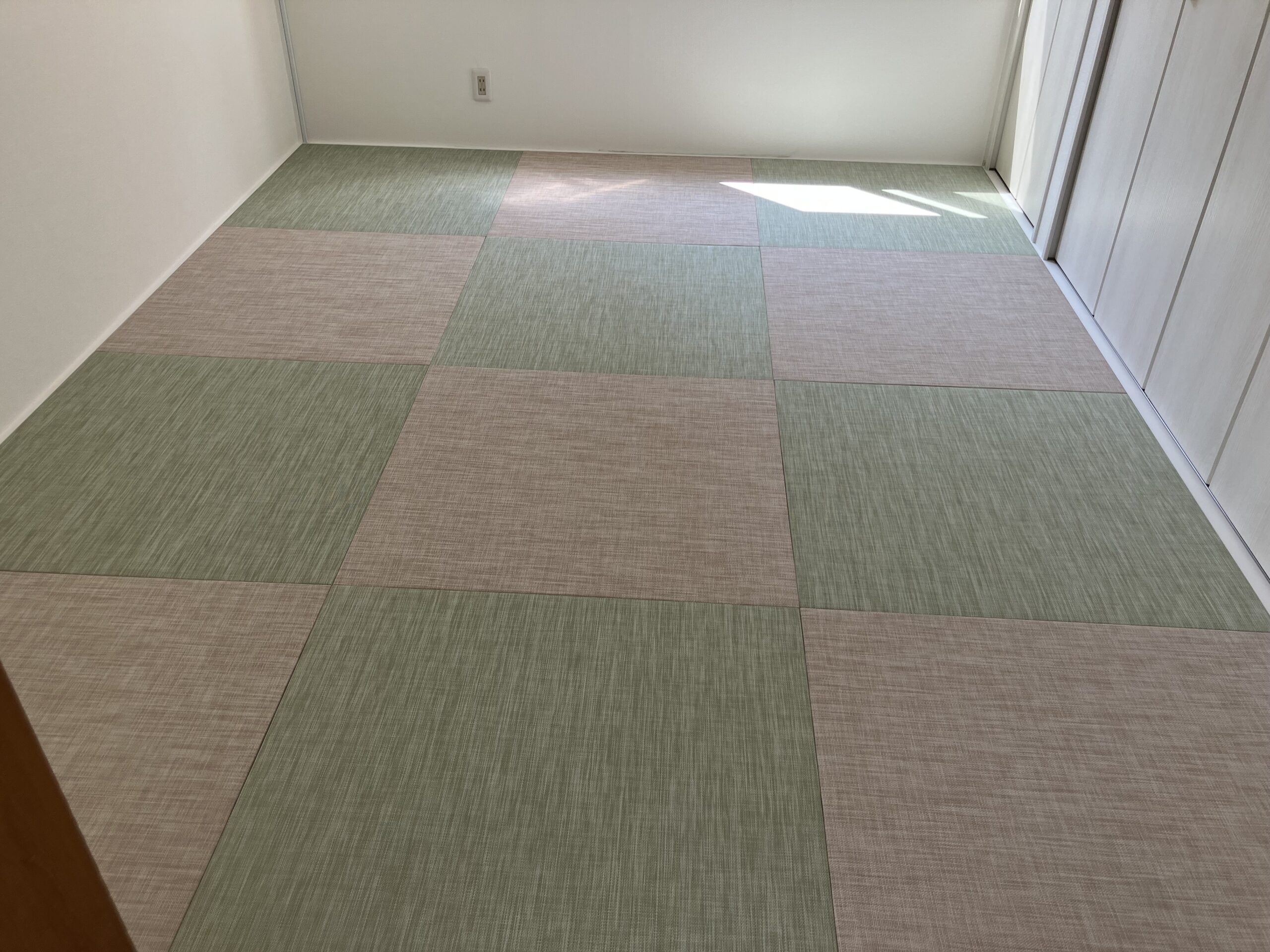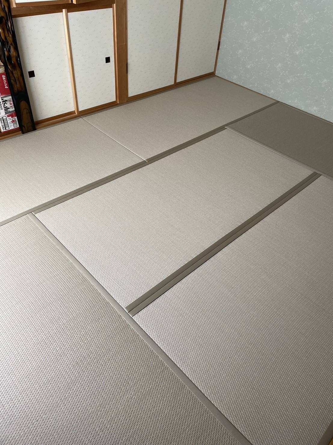 今回の畳表は国産和紙の「ダイケン小波 白茶色」、畳縁は同系色の「ストリーム白茶色」を使用しました。